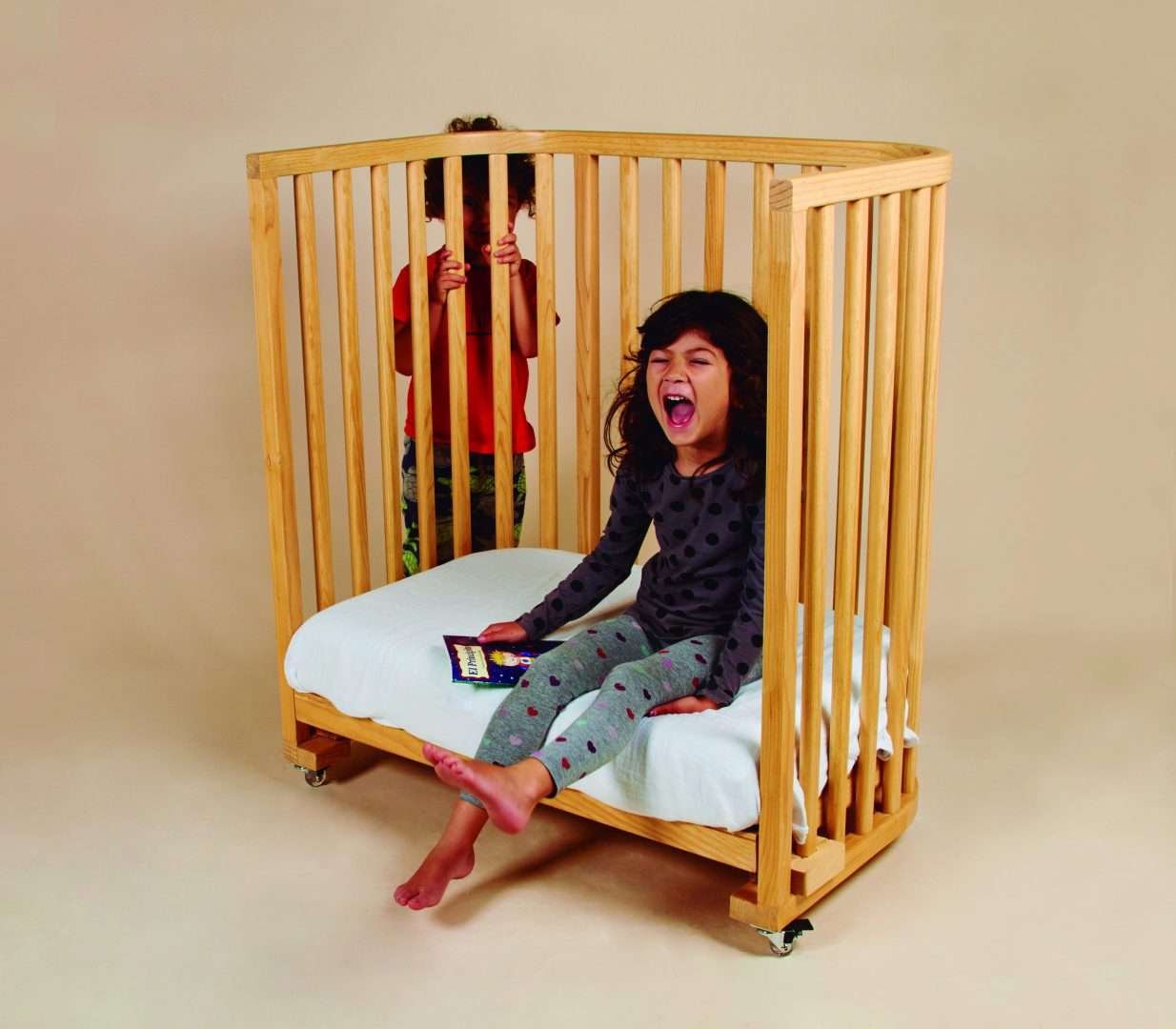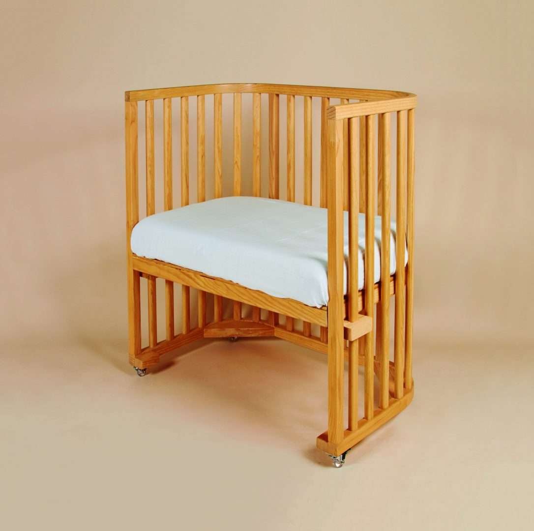 Cuna de madera de pino certificado con acabado natural, gris o blanco sistema de sujeción para cama de mamá y papá. 4 ruedas con freno, colchón con memory foam y funda 75% algodón / 25% poliéster más adelante utilizable como sofacito de lectura o escritorio, sábana de cajón y guarda disponibles por separado.