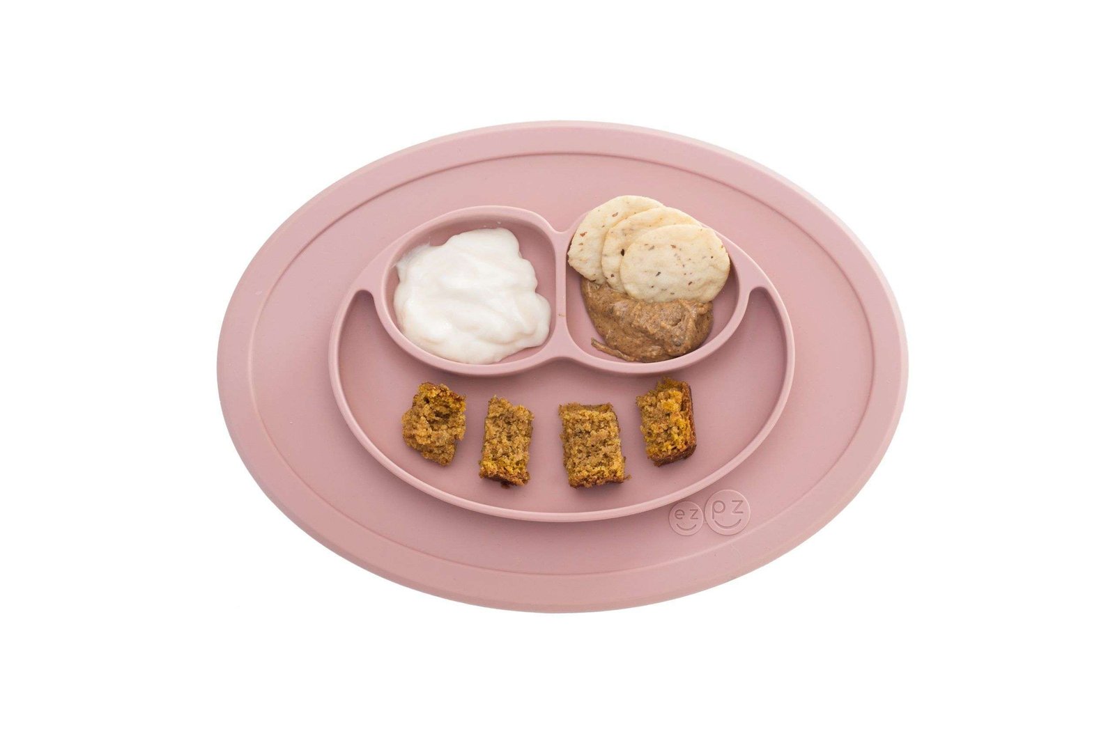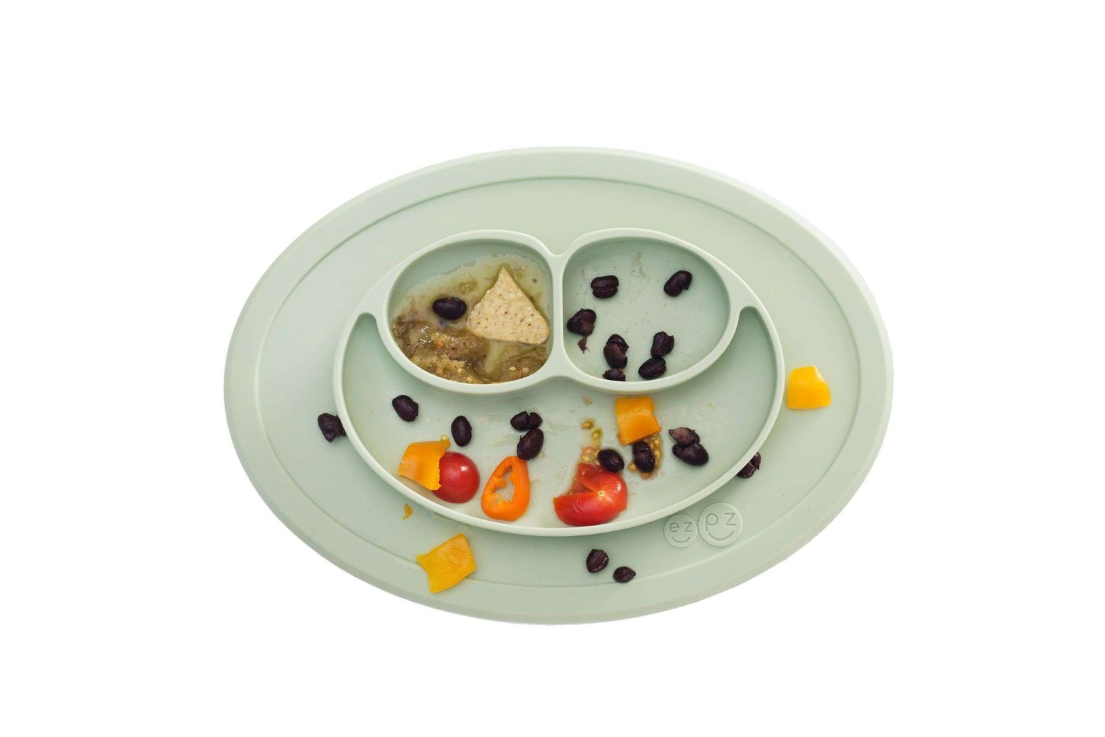 Como los demás productos de EZPZ, el Mini mat es todo en uno: plato y mantel que se succiona a la mesa. ¡La idea de EZPZ es quitar la charola y acercar a tu hijo a la mesa para comer con toda la familia!