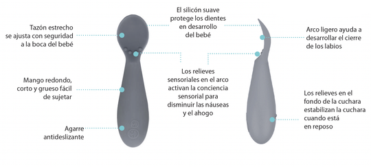Los relieves en el fondo de la cuchara estabilizan la cuchara cuando están en reposo.