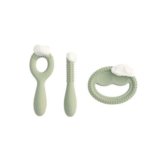 El set de 3 Herramientas de Desarrollo Oral de EZPZ son instrumentos sensoriomotores diseñados para ayudar tu bebé o niño pequeño a practicar sus habilidades para comer, masticar y morder.