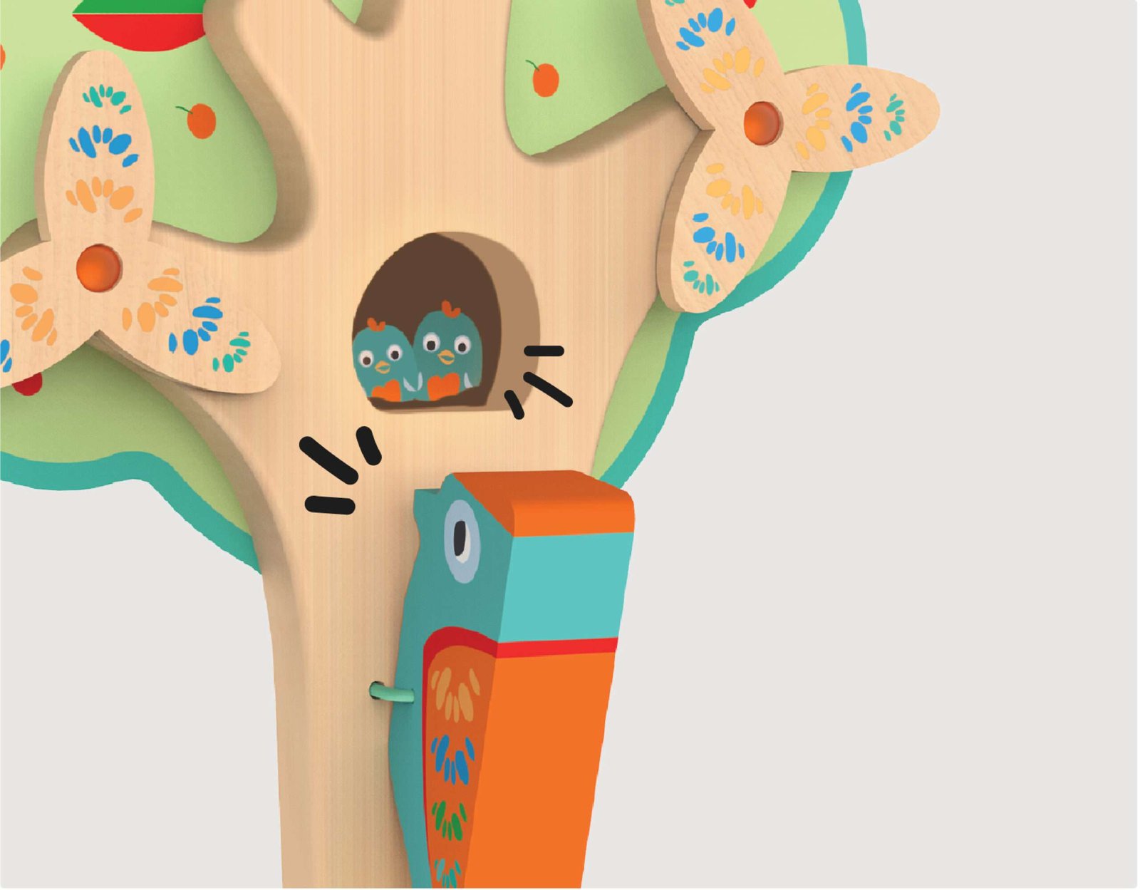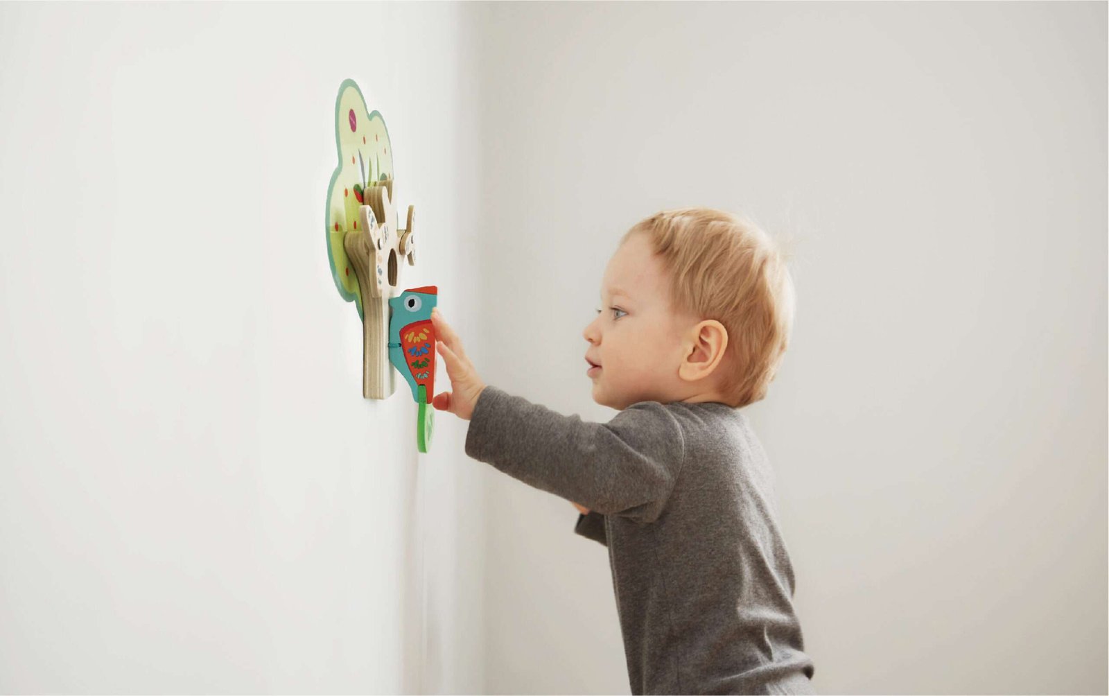La gama de juguetes de pared VertiPlay de Oribel transforma las paredes en una experiencia interactiva! Fácil de pegar y despegar en cualquier pared lisa. ¡Acción y sonido para divertirse en todos lados! ¡Pequeñas manos ocupadas golpeando el árbol con el pájaro carpintero! Este lindo juguete de madera para pared es ideal para bebés a partir de los 6 meses.