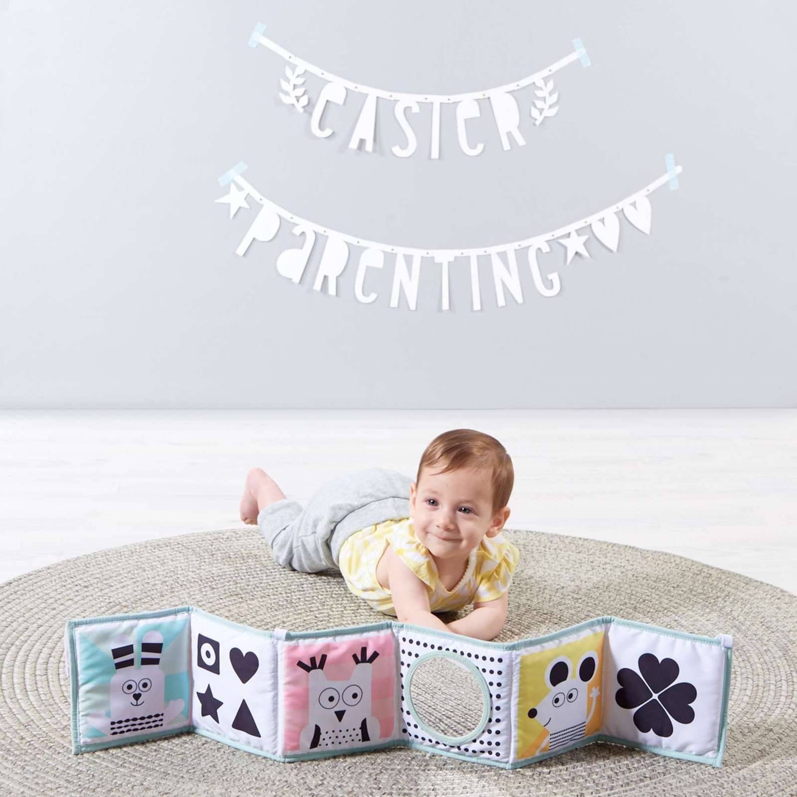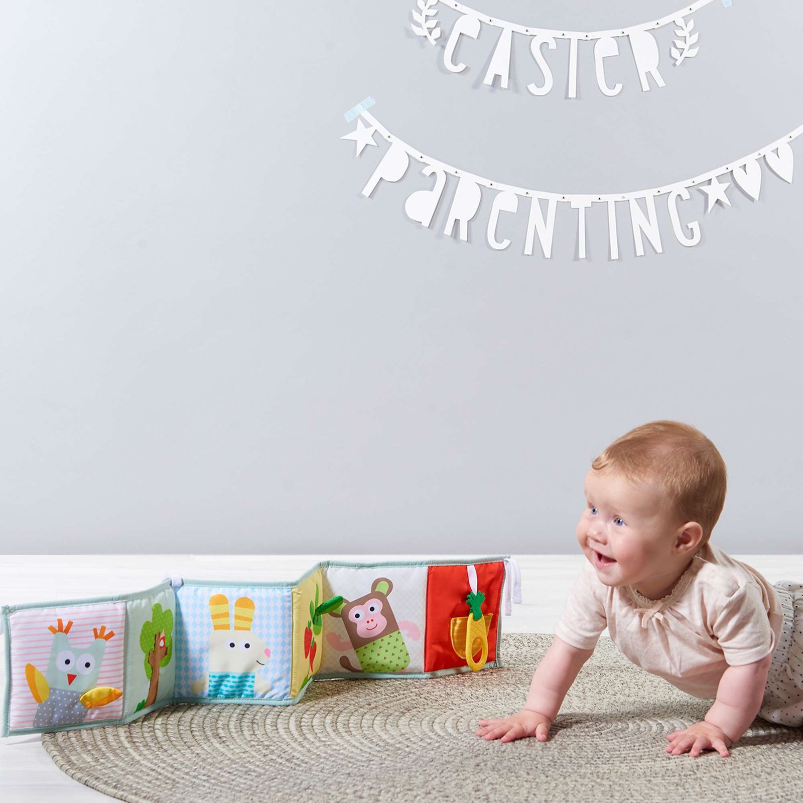 Diversión y estimulación con este suave libro 3 en 1 de Taf Toys.