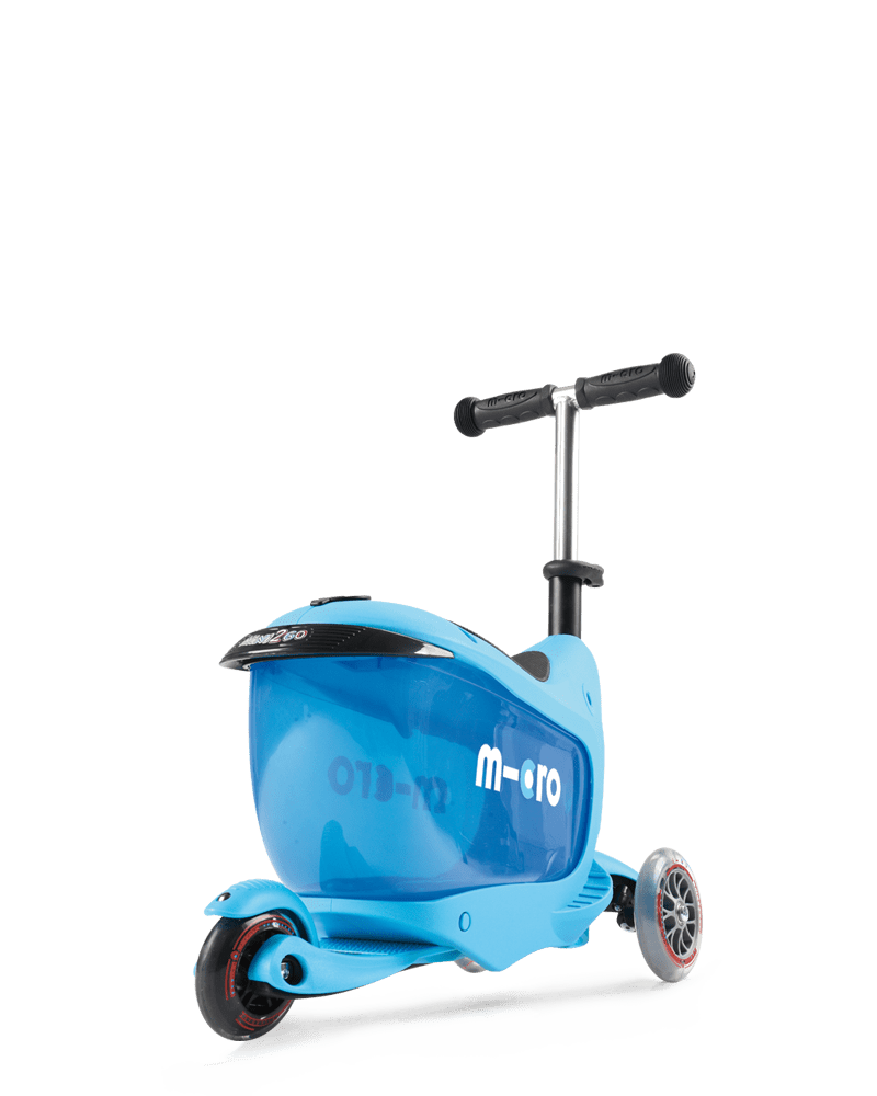 El Mini2go Deluxe es un pequeño e innovador Scooter que tiene un espacio para guardar las pertenencias de los niños.