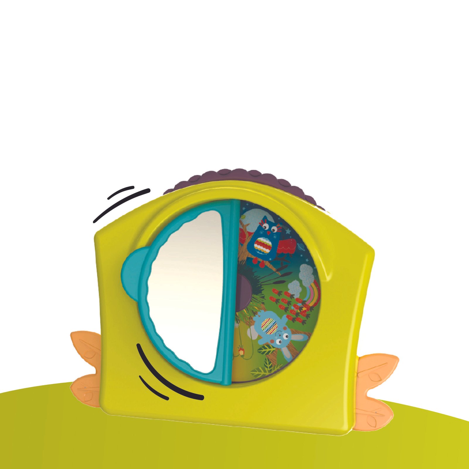 Ayuda al desarrollo de habilidades motoras finas y gruesas y al desarrollo cognitivo; Evoluciona con tu hijo: se transforma a una mesa para niños cuando crece; Se dobla fácilmente para llevar a donde quieras; Incluye 5 juguetes interactivos y un asiento giratorio: Ardilla – Una palanca para empujar hacia abajo hace que suba y baje para desarrollar la motricidad fina del bebé. El botón de chirrido del espejo fomenta el juego; Árbol: Un juguete para desarrollar la destreza y la coordinación ojo-mano mientras el bebé guía las hojas a través de enredaderas o mariquitas arriba y abajo del árbol; Libro de espejo: Juguete de acción múltiple para fortalecer el agarre, la motricidad fina y la conciencia de sí mismo del bebé; Búho giratorio: con cuentas multicolores agregan interés visual y desarrollan las habilidades motoras gruesas; Cereza: Un juguete divertido para dar golpes y masticar