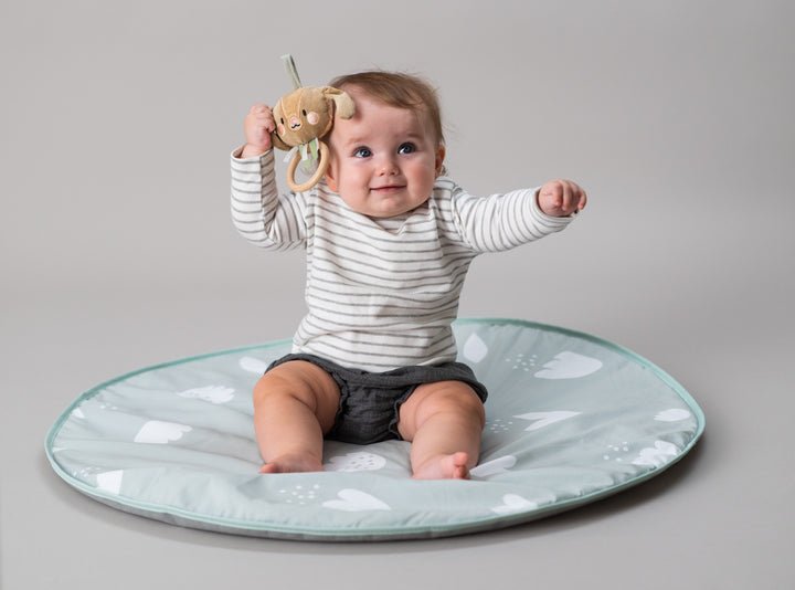 Adorable, elegante y resistente gimnasio para bebés con patas plegables y una alfombra de juegos acolchada, fácil de plegar y transportar cuando estás fuera de casa.