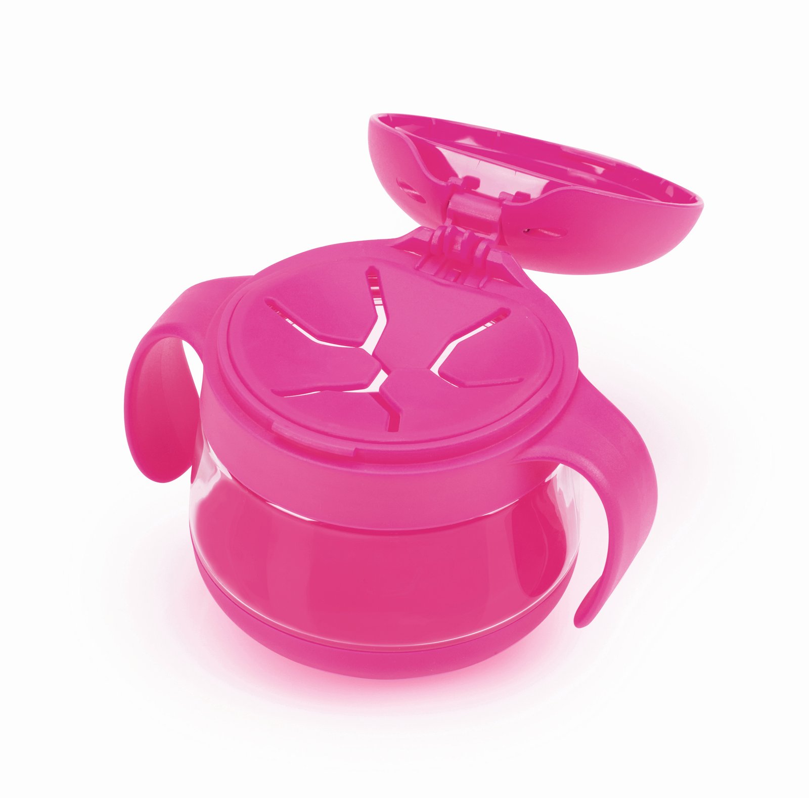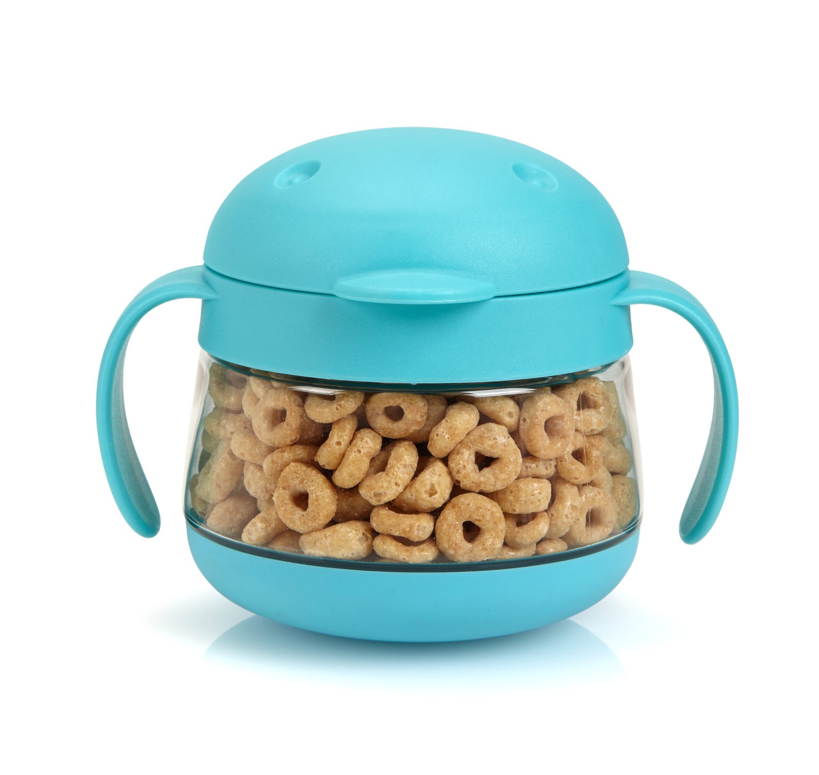 Uno de nuestros bestsellers! A la hora de salir de casa, nunca olvidamos los snacks para el camino, así que este contenedor, solo permite que la manita de tu hijo pueda manipular lo que hay dentro de esta tacita, no se sale nada ya que su diseño, no lo permite !